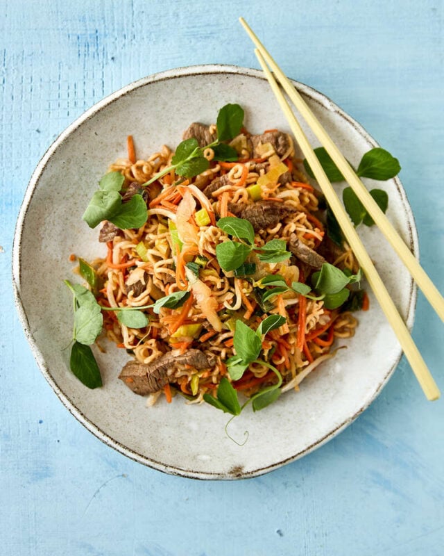 Her kombineres nudler med farverige wokgrøntsager og oksekød til en chow mein-wokret. Chow Mein er en smagfuld fusion af tradition og innovation, og dens popularitet understreger kulinarisk mangfoldighed. Man kan købe chow mein-sauce klar til brug eller lave lave en hjemmelavet udgave med sojasauce, østersauce, sesamolie, sukker og majsstivelse.