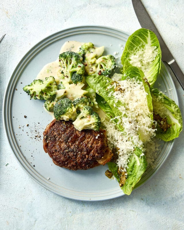 Oksekødsbøf med broccolisauce og salat