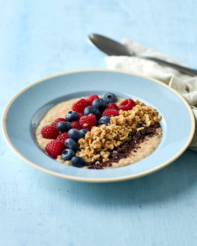 Havregrød med chokolade, valnødder og bær