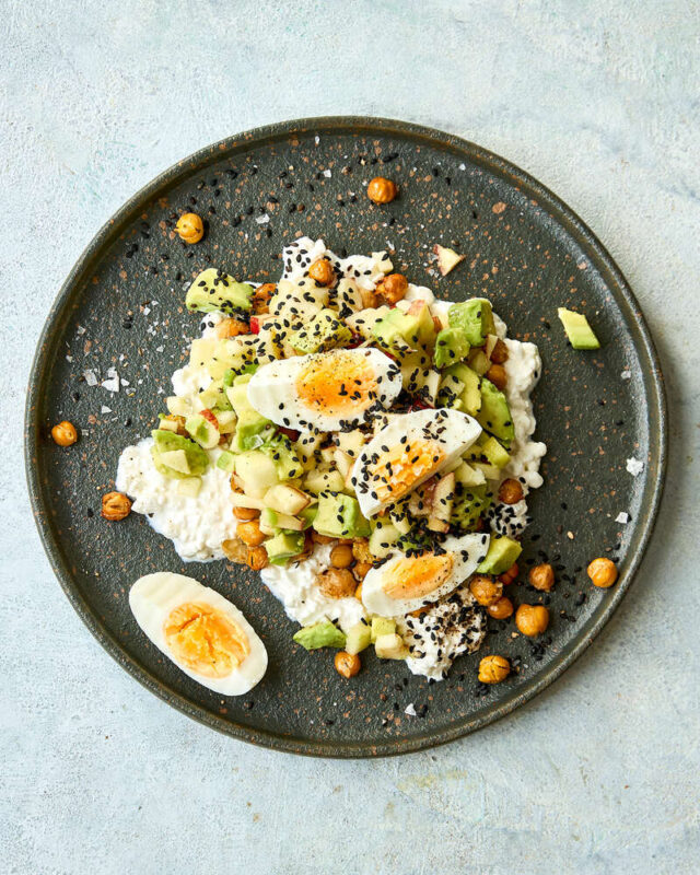 | Håndfuld 3: | Hytteost; kikært, tilberedt; æg |