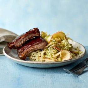 Torskerognsmad med syltet rødløg og gulerodssalat